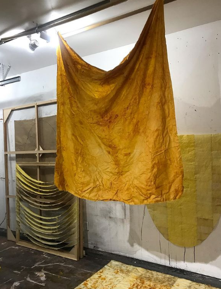 La tercera forma en la que mi trabajo ha cambiado es la incorporación e influencia de mi nueva mentalidad eco-materialista, comprometida con una práctica de estudio sostenible y no tóxica. Con el cambio de la pintura al óleo, al descubrimiento del color natural (el que he encontrado en mi cocina) he continuado en este camino totalmente comprometido con el uso de colores botánicos, haciendo mis propios tintes y pinturas.