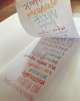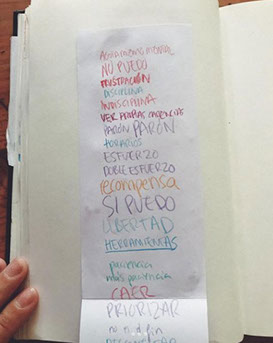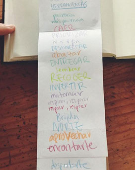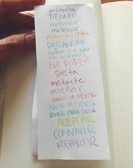 En una hoja de tamaño y color a vuestra eleción escribid a diario una palabra o pequeña frase relacionada con vuestro día como artistas y como madres.