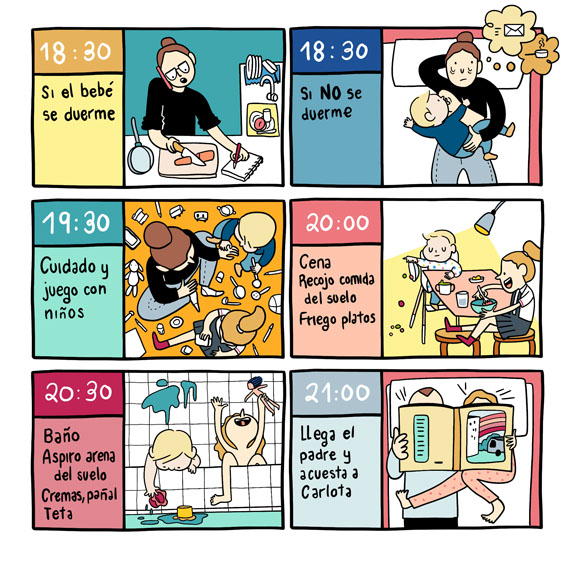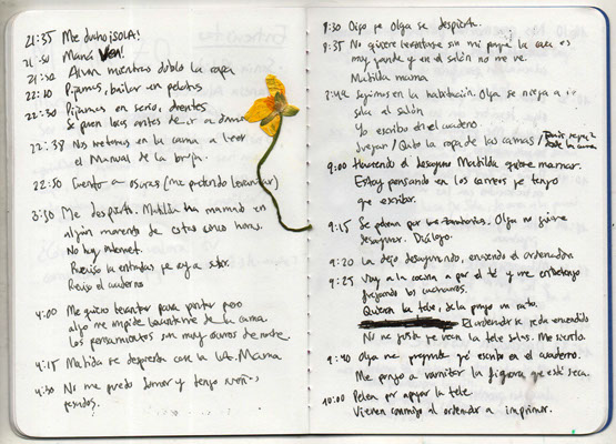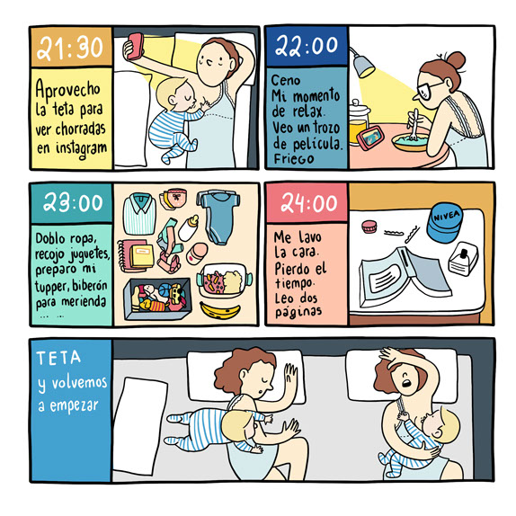 "Una vez mi padre, de esas veces que venía a visitarnos, me dijo ‘Que mal te organizas’, me cabree. Con cualquier tipo de ayuda a más de 800 kilómetros de distancia, un bebé en la teta, una niña de seis años queriendo jugar y aprender y un deadline le odié y le grité ‘Cómo te crees que se hace esto? Alguna vez has tenido que hacer todo a la vez?’ Le dije. Mi enfado tenía parte de razón, parte de rencor, parte de orgullo. Porque es verdad, me organizo fatal. Qué voy a decir, el caos es permanente. Un equilibrio entre la Madre y la Artista, la una quitándole minutos a la otra, luchando a cualquier momento del día.