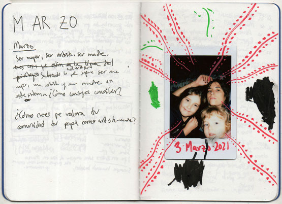 Sé que no es conciliación porque, como la mayoría de las artistas-madres (y madres en general), no tenemos las condiciones para que eso ocurra. Hacemos nuestra propia conciliación con lo que tenemos, encontramos todo tipo de caminos para que las dos partes sigan coexistiendo y no se tengan mucho rencor la una a la otra, incluso para que de vez en cuando ocurra la magia y se inspiren.”