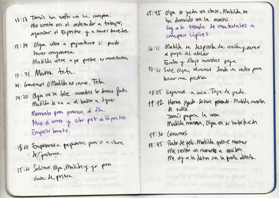 Como ejercicio propongo registrar 24 horas de tu vida, desde que te levantas hasta que te acuestas. Escribe en una hoja las horas y breves detalles de cuando pintas, maternas, limpias, cuidas, creas...