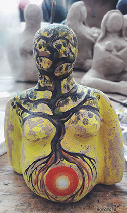 Cuando Iyari se fue de mi útero, cambió de forma y se transformó en una pequeña higuera. En este momento, muy pronto, me puse a dibujar úteros vacíos en un curso que hablaban de pérdidas gestacionales, y piezas de barro de mujeres madres, y madres mariposas llenaron la estantería de mi cocina.