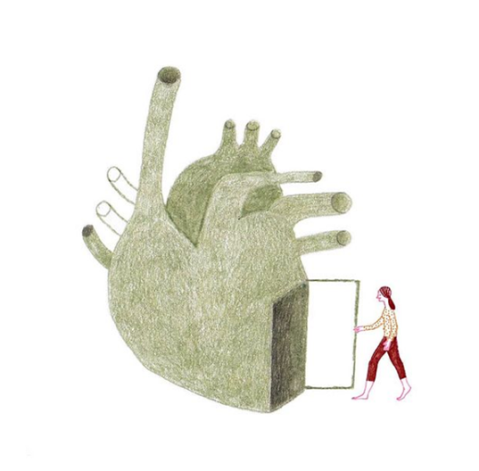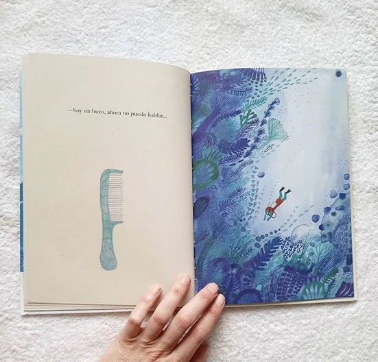 “El Abrazo” es un álbum que gracias a la maternidad terminé de cerrar tanto en concepto como en forma. Es un proyecto que llevaba años desarrollando a raíz de la creación de un personaje. La maternidad me abrió otro camino y lo que en un principio iba a ser un libro de viaje-aventura se convirtió en un libro que habla sobre la importancia de los cuidados. Es un proyecto que ha sido seleccionado en bastantes concursos prestigiosos internacionales de ilustración y como álbum en el The Unpublished Picturebook. Me hace muy feliz. Está en trámites de venta así que pronto verá la luz y llegará a las casas para llenarlas de abrazos.